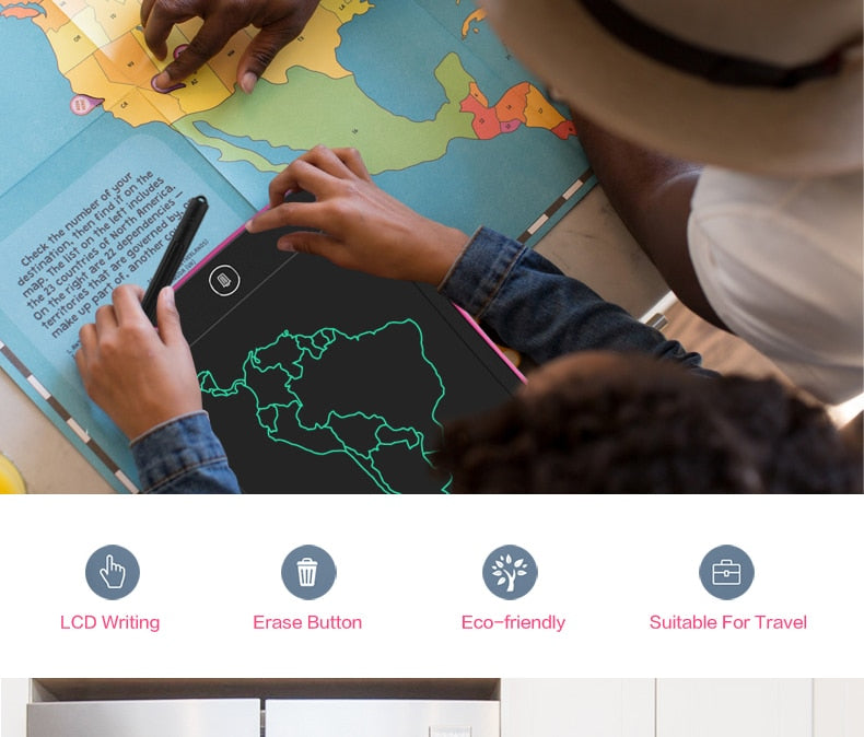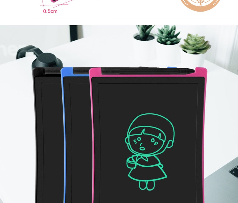 Descripción:Tablet ultra fina con pantalla LCD de 8.5" ideal para que los más pequeños desarrollen su imaginacion dibujando y escribiendo, cuenta con un boton para borrar el contenido de la pantalla.